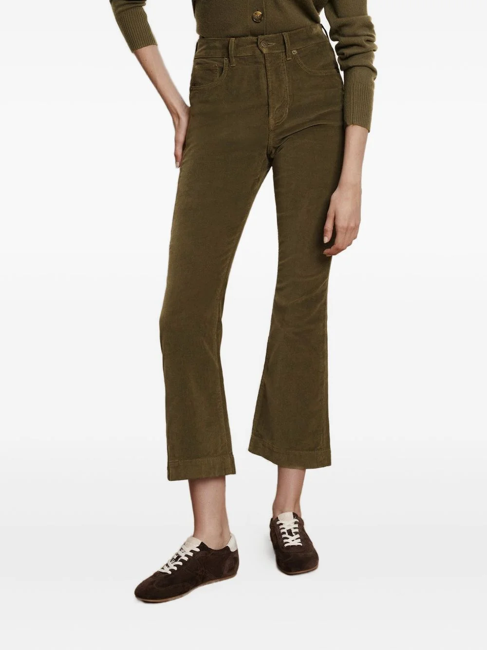Carson corduroy flared jeans Highlights - Cypress green - Corduroy texture - Belt loops - Button fastening - Metal hardware Imported Composition Fabric 100% Washing instructions Read Manufacturer Guidelines