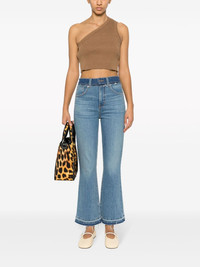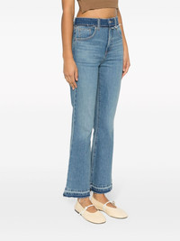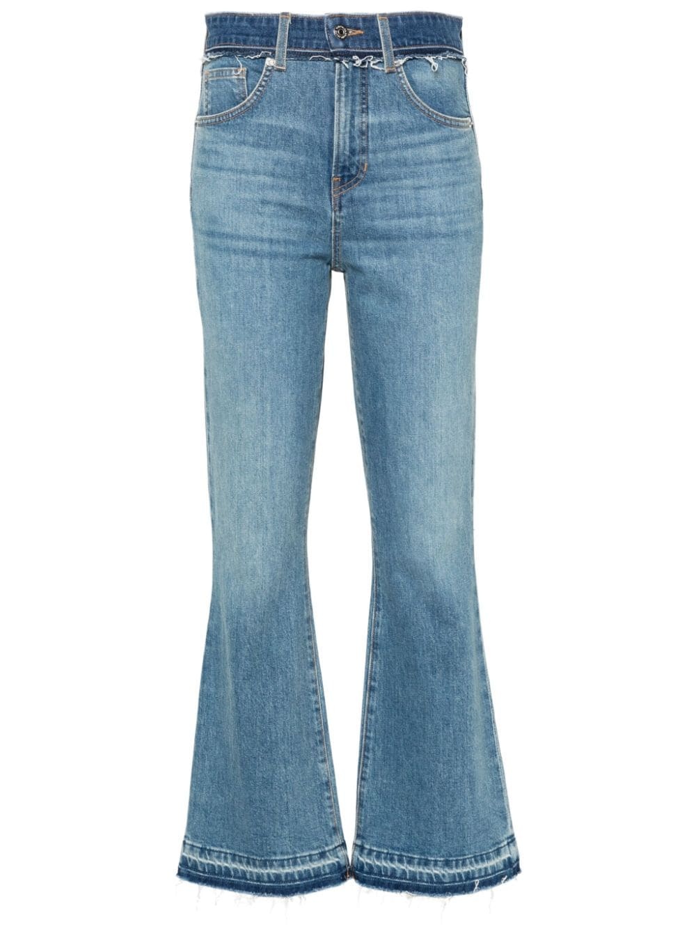 Carson high-rise flared jeans Highlights - Blue - Stretch-cotton - Washed denim - Two-tone design - Contrast stitching - High-rise - Belt loops - Coin pocket - Two front pouch pockets - Rear patch pocket - Ripped detailing - Whiskering effect at the thighs - Skinny cut - Flared ankles - Cropped leg - Concealed fly and button fastening Made in United States Composition Cotton 98%, Elastane 2% SIZE & FIT Model measurements Height 5 ft 10 in(1.77 m) Bust/Chest 31.88 in(81 cm) Hips 36.22 in(92 cm) Waist 24.01 in(61 cm) FittingInformation Designed with a flared hem, these jeans allow for a close fit at the waist with a slim fit over the leg and widening towards the hem Constructed from stretch denim, this piece offers a stretch fit with durability This piece fits true to size – take your usual size Washing instructions Dry Clean Only