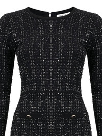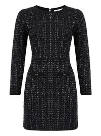 Channing knit mini dress Highlights - Black - Round neck - Long sleeves - Two front buttons - Mini length Imported Composition Viscose 56%, Polyester 40%, Polyamide 4% Washing instructions Read Manufacturer Guidelines