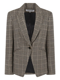 checked blazer Highlights - Beige - Checked pattern - Front button fastening - Long sleeves - Notched lapels - Side slit pockets Made in United States Composition Polyester 64%, Viscose 33%, Elastane 3%