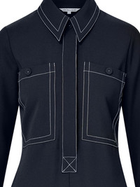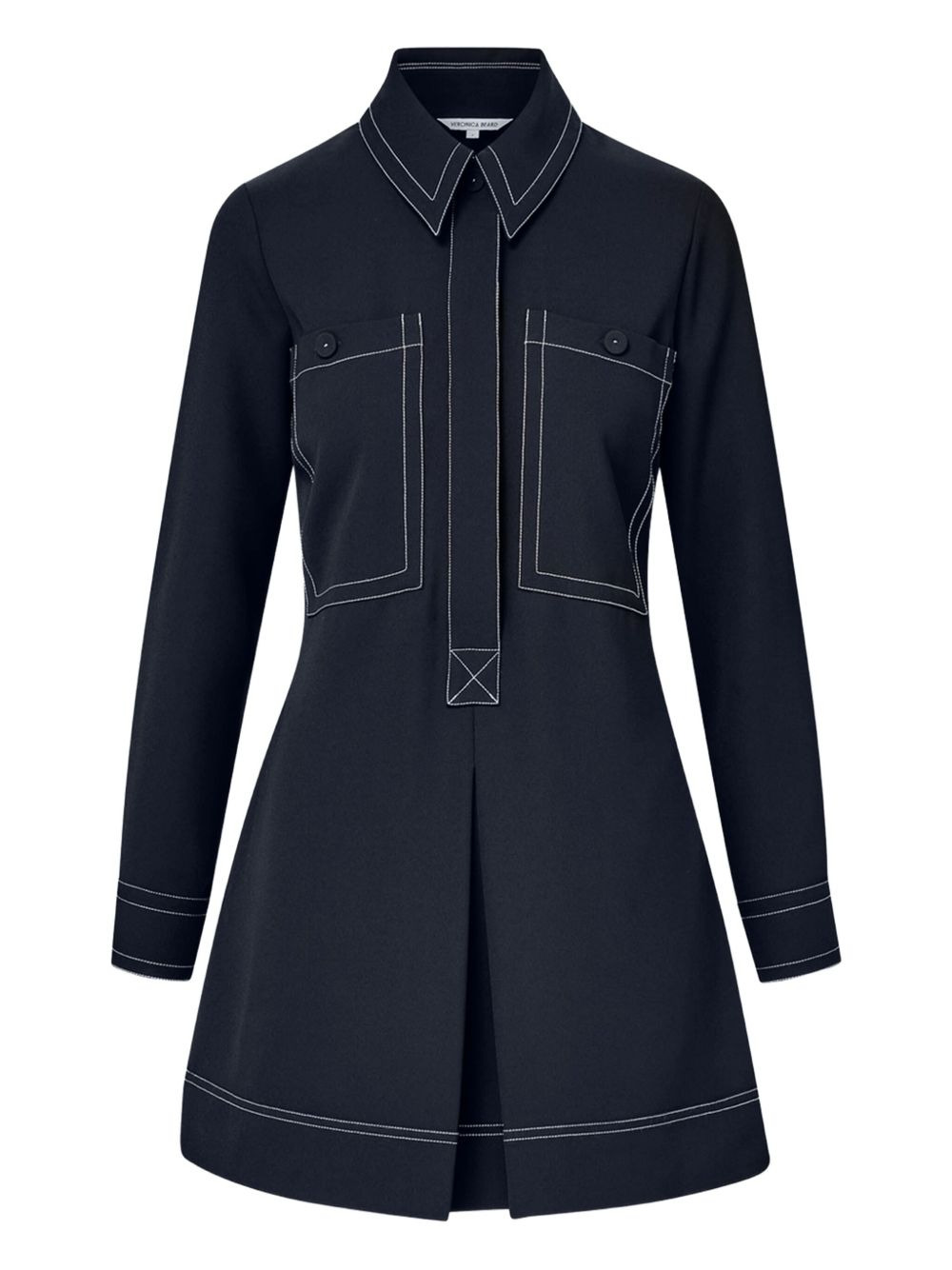 contrast-stitch shirt mini dress Highlights - Navy blue - Long sleeves - Front pockets - Contrast stitching - Inverted pleat Imported Composition Polyester 97%, Elastane 3% Washing instructions Dry Clean Only