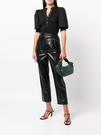 Coralee button-up top black cotton blend V-neck button fastening short puff sleeves Made in United States Composition Body: Cotton 97%, Elastane 3%