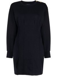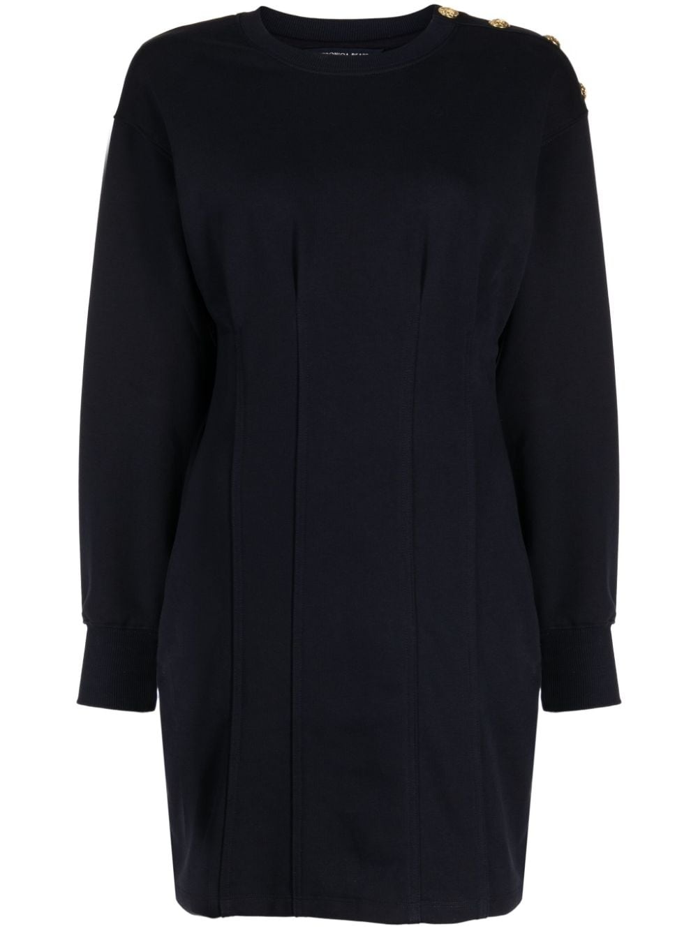 Dakasha buttoned dress Highlights - Navy blue - Cotton blend - Jersey texture - Crew neck - Button fastening at the shoulder - Long sleeves - Thigh-length Imported Composition Cotton 86%, Polyester 14% Washing instructions Dry Clean Only