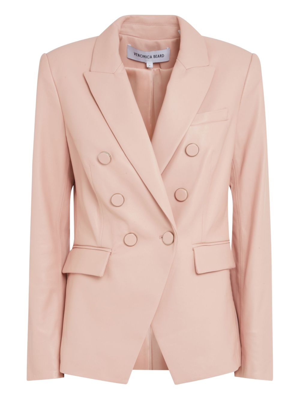 double-breasted blazer Highlights - Soft pink - Peak lapel - Double-breasted button fastening - Flap pockets - Single chest pocket - Long sleeves Imported Composition Calf Leather 100% Washing instructions Read Manufacturer Guidelines