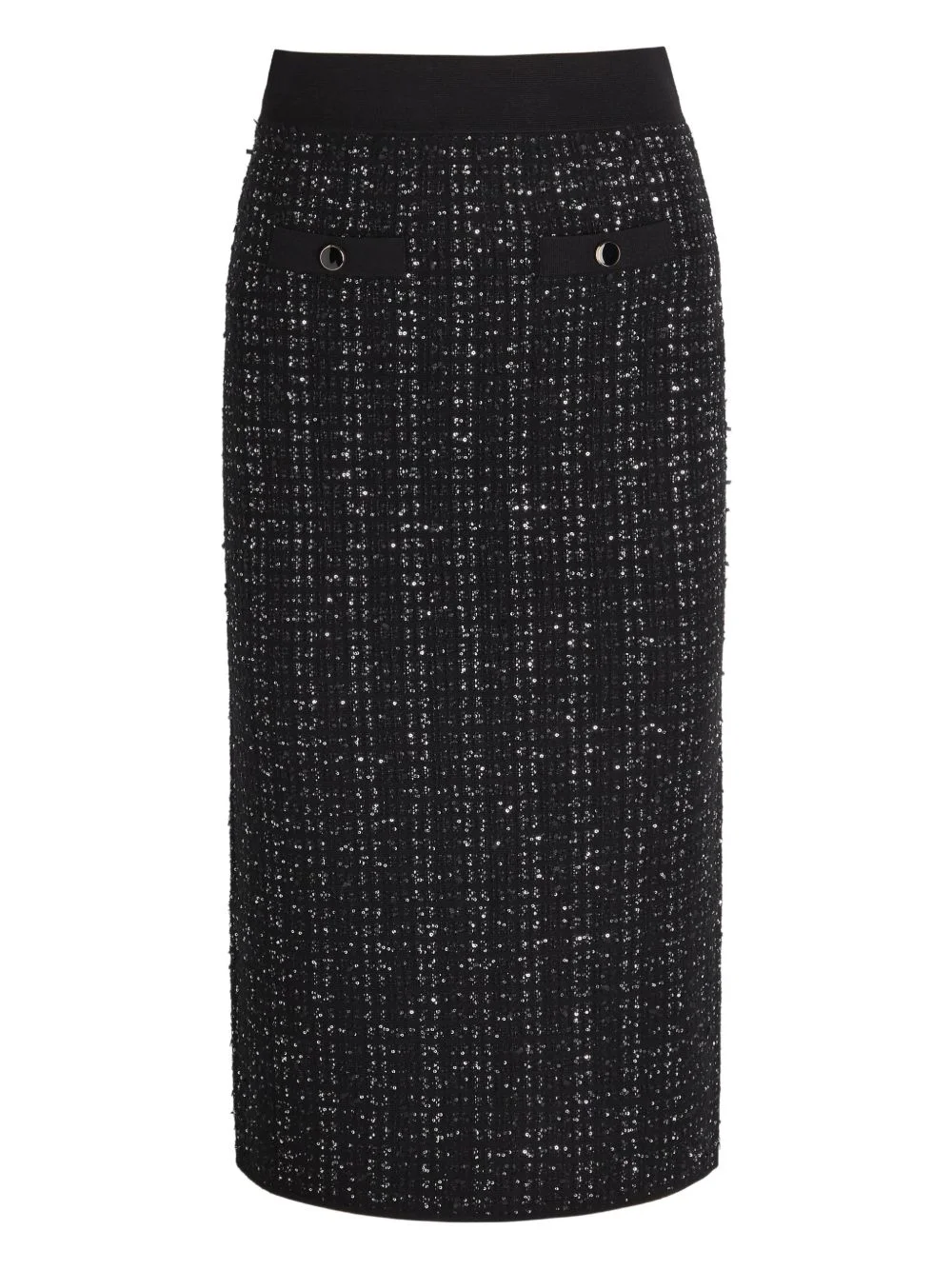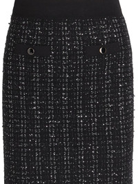 eyelet tweed skirt Highlights - Black - Tweed effect - Eyelet detail - Fitted waist - Straight hem - Knee-length Imported Composition Fabric 100%