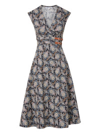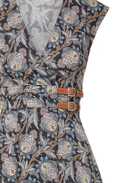 floral-print belted midi dress Highlights - Black - Floral print - V-neck - Sleeveless - Belted detail - A-line skirt Imported Composition Cotton 97%, Spandex/Elastane 3% Washing instructions Read Manufacturer Guidelines
