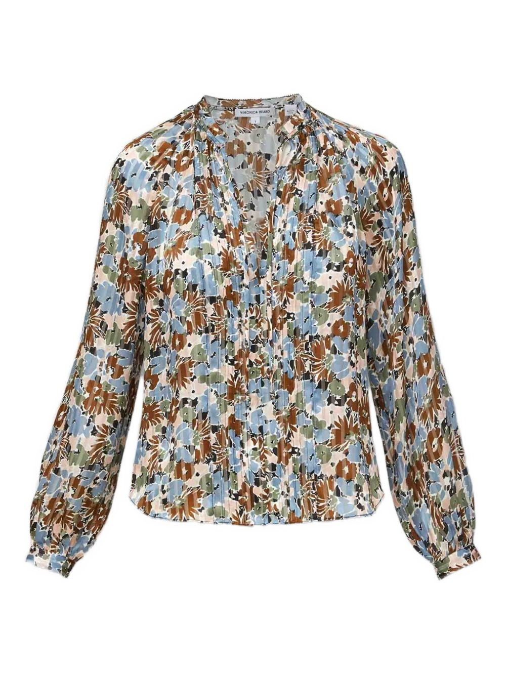 floral-print pleated blouse Highlights - Multicoloured - Floral print - Pleated detailing - V-neck - Long sleeves - Button fastening Imported Composition Silk 100% Washing instructions Dry Clean Only