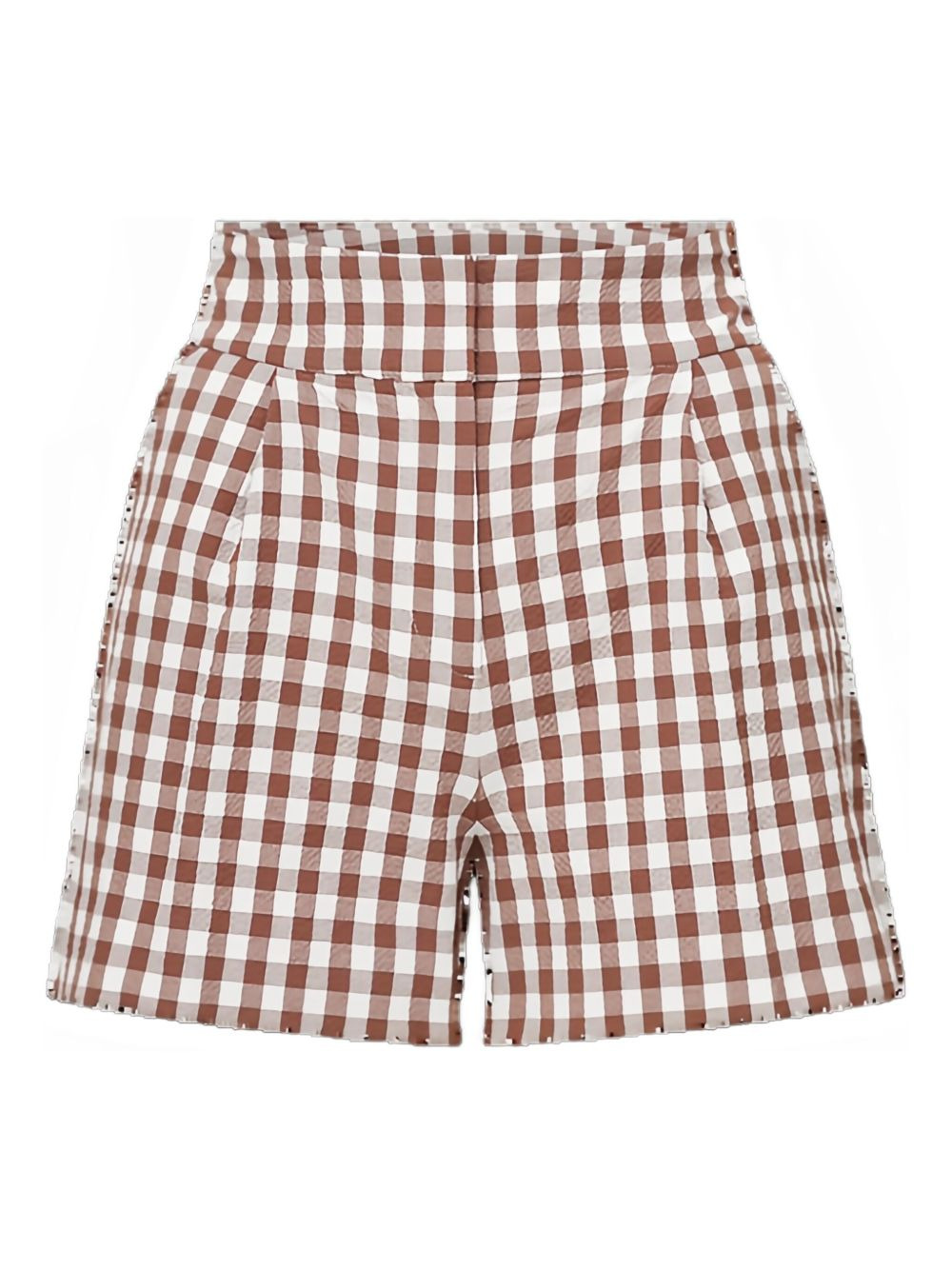 Haina gingham-pattern pleated shorts Highlights - Brown - Gingham-check pattern - Pleated front - Side pockets Imported Composition Outer: Cotton 98%, Elastane 2% Lining: Viscose 100%