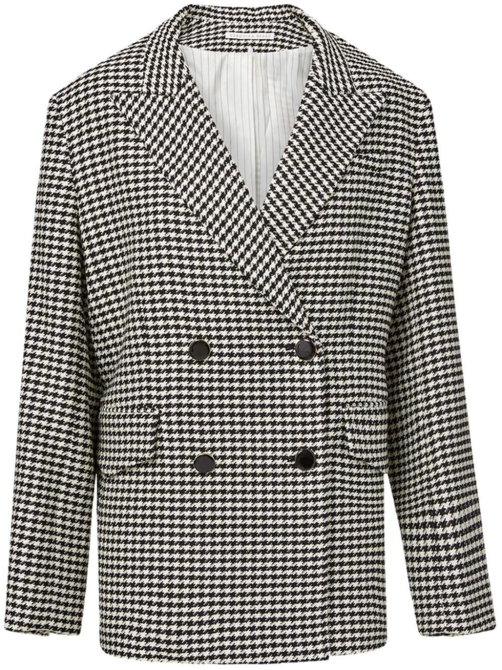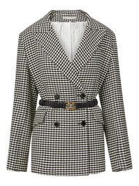 Hutchinson houndstooth-pattern blazer Highlights - Black/white - Houndstooth pattern - Detachable belt - Notched lapels - Double-breasted button fastening - Long sleeves - Two side flap pockets - Straight hem Imported Composition Outer: Acrylic 57%, Polyester 34%, Viscose 8%, Elastane 1% Lining: Viscose 52%, Polyester 48% SIZE & FIT Measurement SLEEVE LENGTH 16.92 in(43 cm) LENGTH 29.92 in(76 cm) BUST 40.94 in(104 cm) Washing instructions Read Manufacturer Guidelines