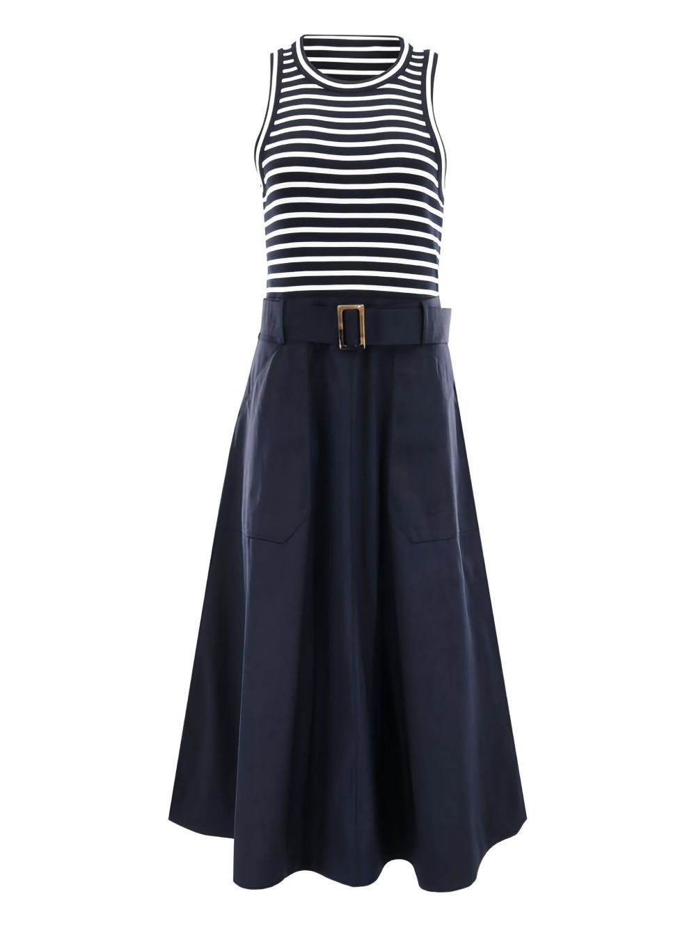 Jordyn belted dress Highlights - Navy blue - Sleeveless design - Belted waist - A-line skirt Imported Composition Cotton 96%, Elastane 4% Washing instructions Machine Wash