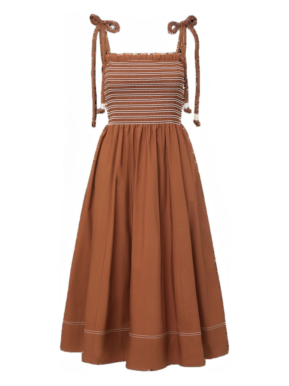 Kaela cotton dress Highlights - Brown - Smocked bodice - Tie straps - Side pockets - Contrast stitching Imported Composition Cotton 100% Washing instructions Read Manufacturer Guidelines