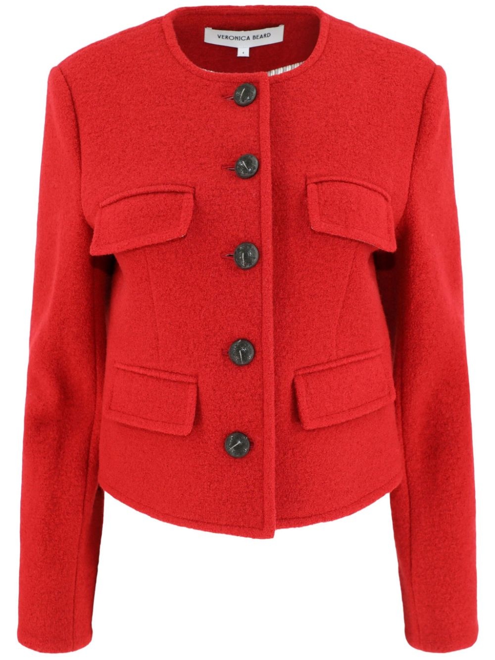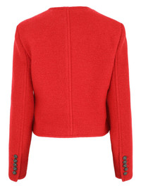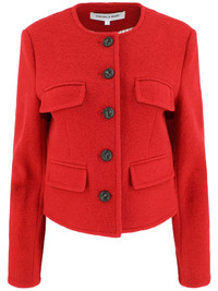 Leslie jacket Highlights - Crimson - Front button fastening - Four front flap pockets - Collarless - Long sleeves Made in Italy Composition Outer: Virgin Wool 100% Lining: Polyester 100%