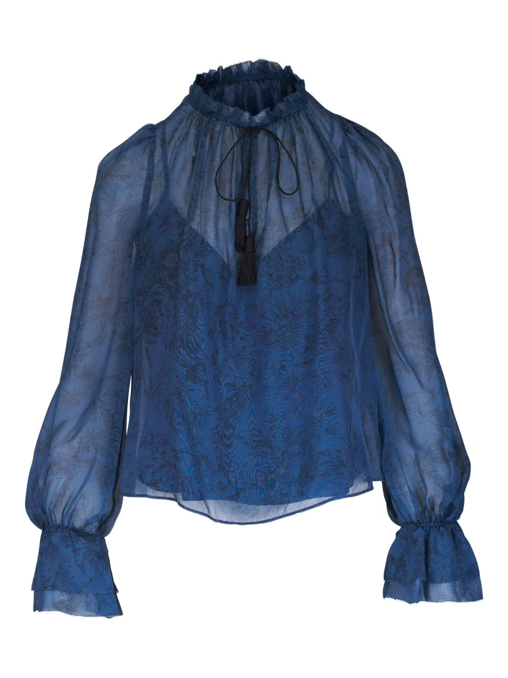 Maxime ruffled-neck blouse Highlights - Blue - Floral print - Ruffled high neck - Long sleeves - Ruffled cuffs Made in United States Composition Outer: Silk 100% Lining: Polyester 100% Washing instructions Dry Clean Only