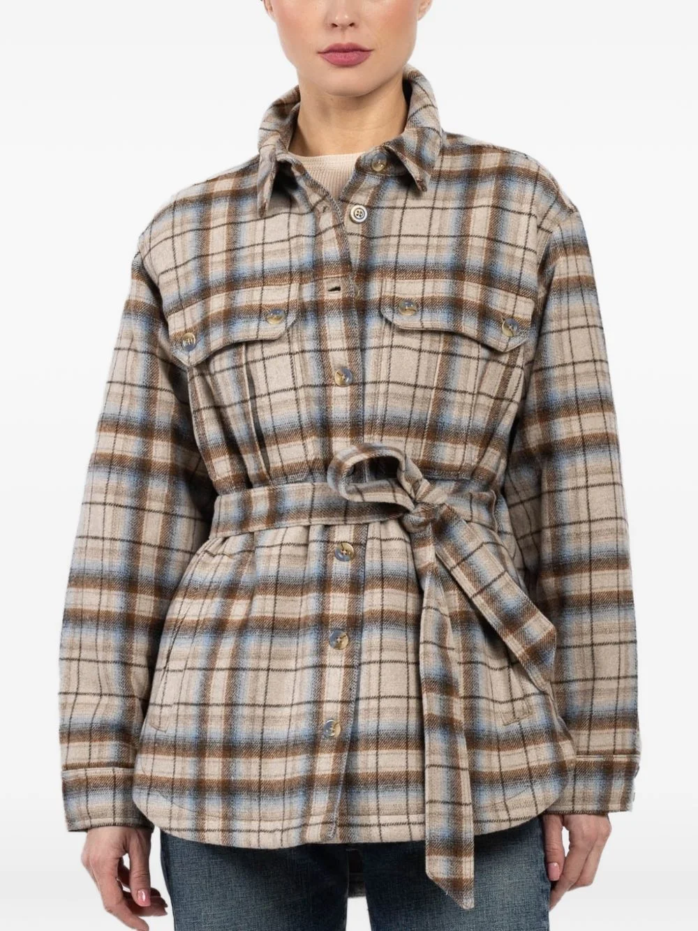 Mikaela plaid jacket Highlights - Beige - Plaid pattern - Chest flap pockets - Button fastening - Tie waist Imported Composition Cotton 51%, Polyester 26%, Wool 20%, Other fibres 3% Washing instructions Dry Clean Only