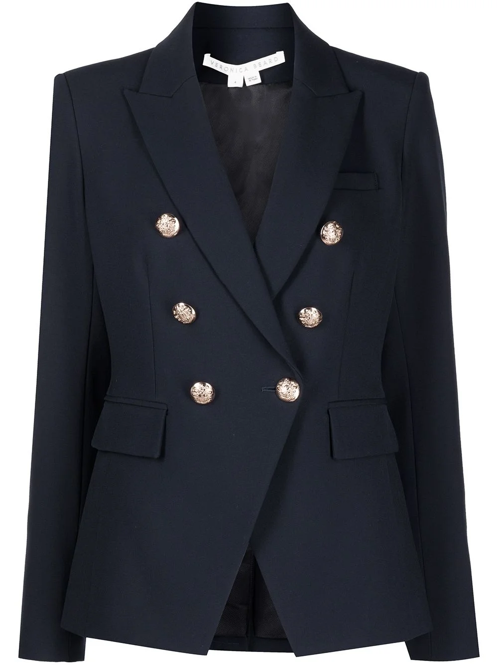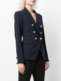 Miller Dickey blazer Highlights - Navy blue - Cotton blend - Peak lapels - Long sleeves - Double-breasted button fastening - Two side flap pockets Imported Composition Polyester 63%, Viscose 27%, Cotton 7%, Elastane 3% SIZE & FIT Model measurements Height 5 ft 10 in(1.79 m) Bust/Chest 31.1 in(79 cm) Hips 33.85 in(86 cm) Waist 22.83 in(58 cm) Measurement SLEEVE LENGTH 24.8 in(63 cm) Washing instructions Dry Clean Only