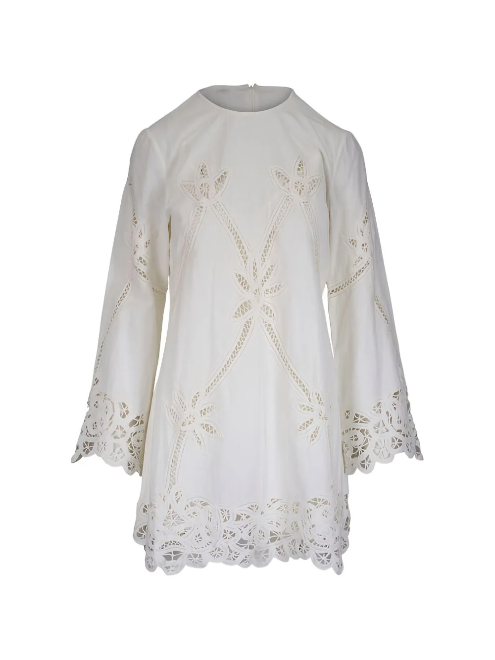 mini Amberg lace dress Highlights - White - Dove - Laser-cut detailing - Long sleeves - Round neck Made in United States Composition Outer: Cotton 75%, Linen/Flax 25% Lining: Cotton 100% Washing instructions Dry Clean Only