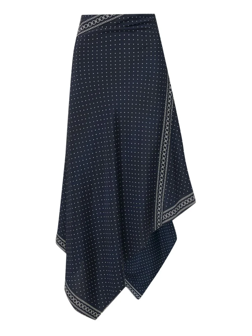 polka-dot asymmetric skirt Highlights - Blue - Polka dot pattern - Asymmetric hem - Midi length Imported Composition Outer: Silk 93%, Elastane 7% Lining: Polyester 100% Washing instructions Dry Clean Only