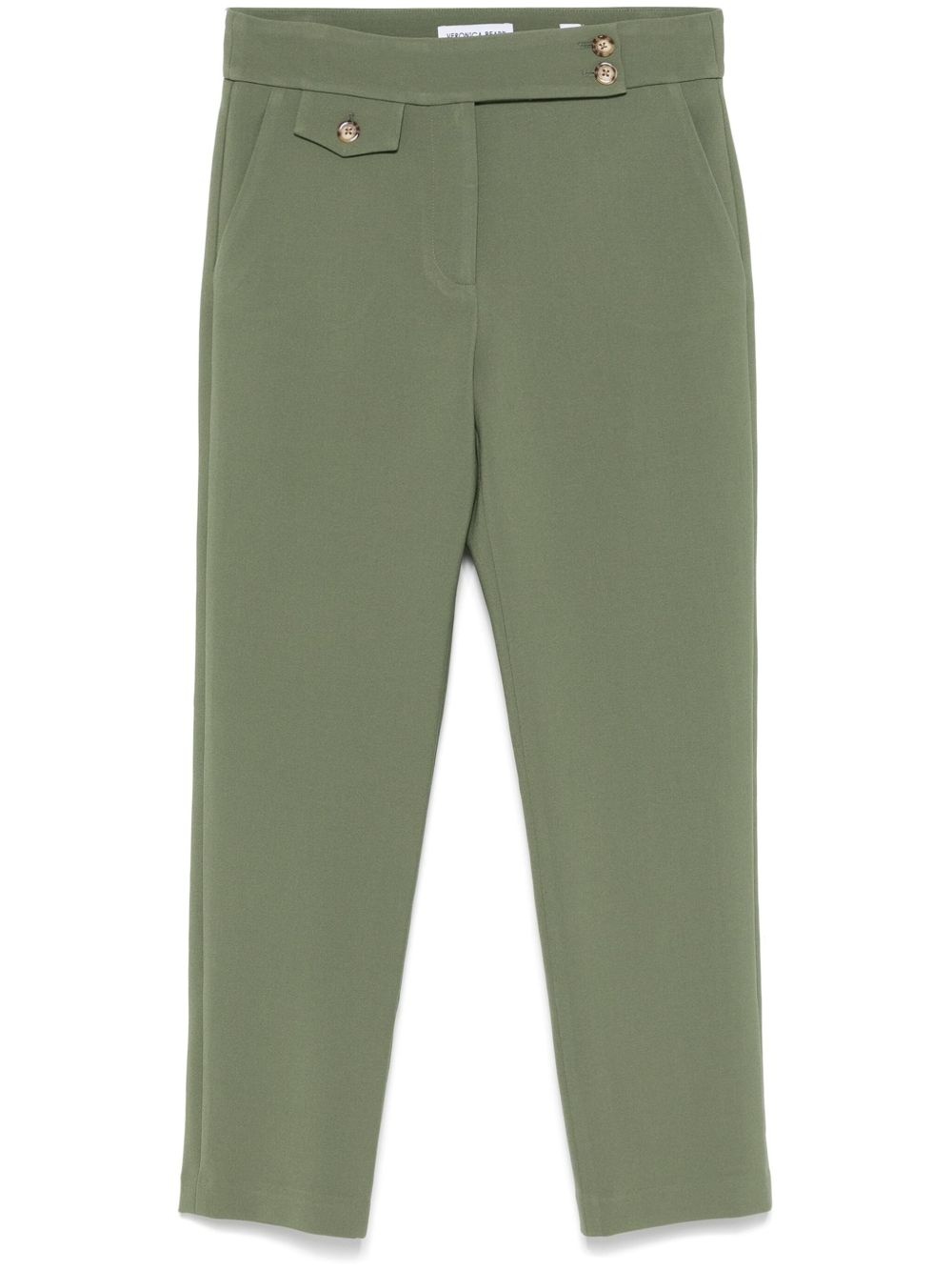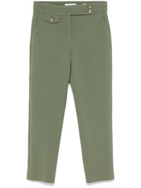 Renzo trousers Highlights - Asparagus green - Front button fastening - Two side slash pockets - Coin pocket - Two rear welt pockets Made in United States Composition Outer: Polyester 63%, Viscose 27%, Cotton 7%, Elastane 3% Lining: Polyester 100% Washing instructions Dry Clean Only