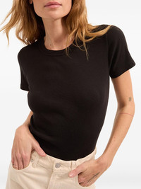 ribbed crew-neck T-shirt Highlights - Black - Ribbed texture - Crew neck - Short sleeves - Straight hem Imported Composition Cotton 97%, Elastane 3% Washing instructions Dry Clean Only