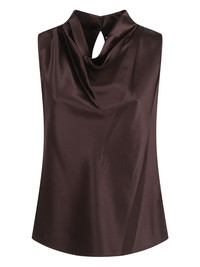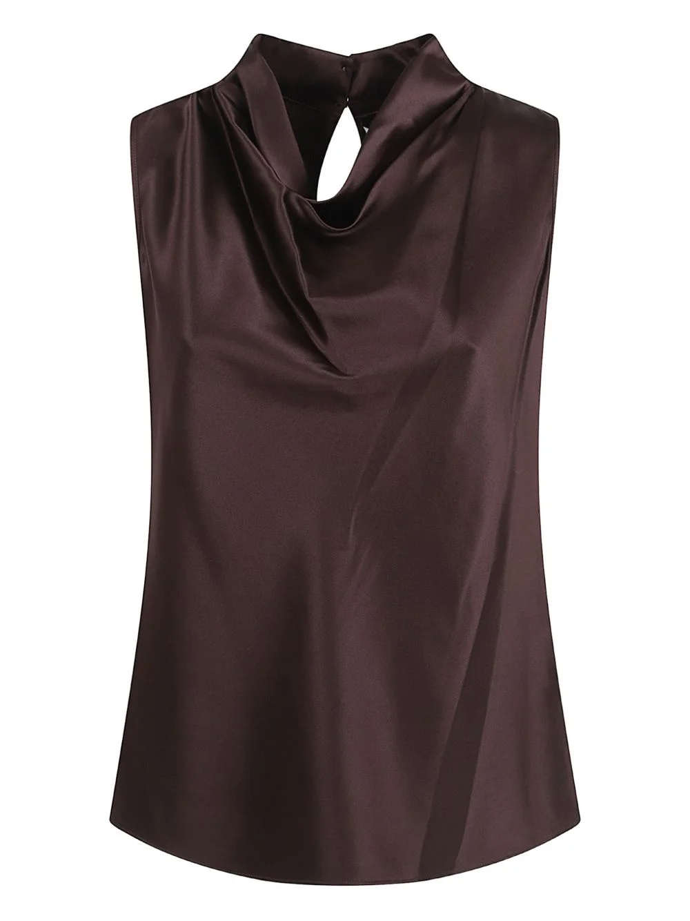 Tam cowl-neck blouse Highlights - Brown - Cowl neck - Sleeveless - Keyhole detail at the rear - Rear button fastening Made in United States Composition Viscose 70%, Silk 30% Washing instructions Read Manufacturer Guidelines