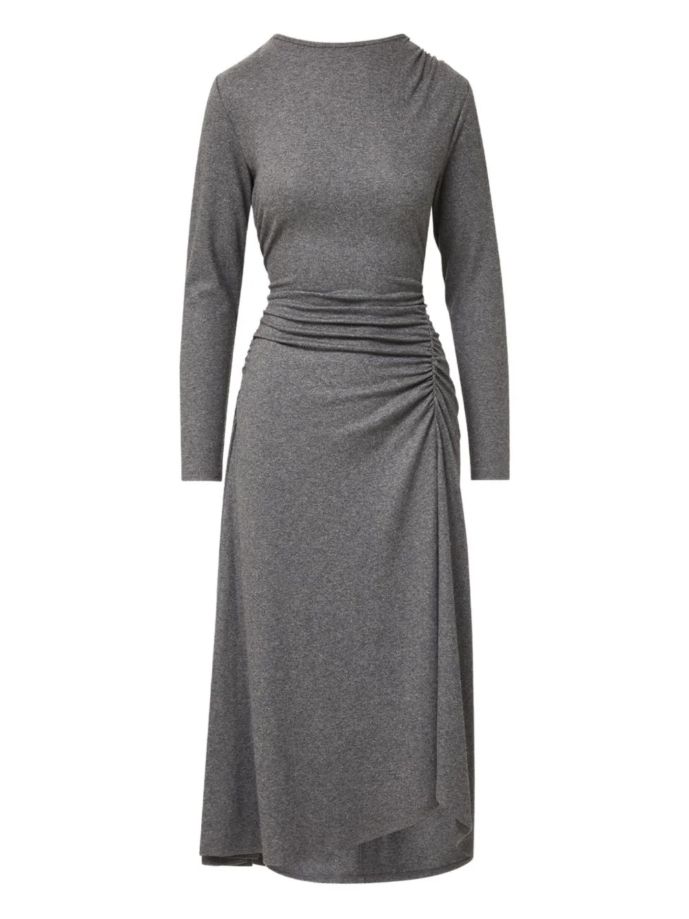 Theodora midi dress Highlights - Medium heather grey - Round neck - Long sleeves - Gathered detail - Asymmetric hem Made in Italy Composition Wool 39%, Polyester 29%, Viscose 29%, Elastane 3% Washing instructions Dry Clean Only