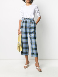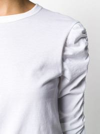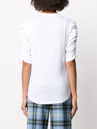 Waldorf T-shirt White pima cotton Waldorf T-shirt from Veronica Beard featuring ruched details, a round neck and short sleeves. Imported Composition Pima Cotton 100% SIZE & FIT FittingInformation This piece fits true to size. We recommend you get your regular size Cut for a slim fit Made with a mid-weight fabric Washing instructions Machine Wash