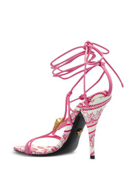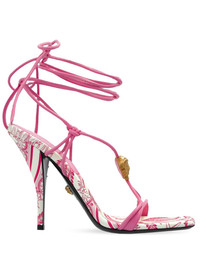 120mm Medusa Head-plaque sandals Highlights - Pink - Floral print - Adjustable lace-up straps - 120mm tapered heel Made in Italy Composition Outer: Calf Leather 100% Lining: Calf Leather 100% Sole: Calf Leather 100%, Rubber 100% SIZE & FIT Measurement HEEL 4.72 in(12 cm)