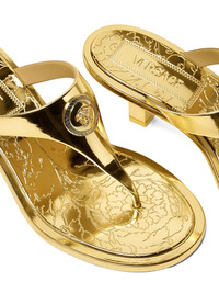 55mm Alia metallic mules Highlights - Gold-tone - Slip-on style - Kitten heel - Branded footbed - Medusa plaque detail - Thong strap Made in Italy Composition Outer: Thermoplastic Polyurethane (TPU) 100% Lining: Thermoplastic Polyurethane (TPU) 100% Sole: Thermoplastic Polyurethane (TPU) 100%
