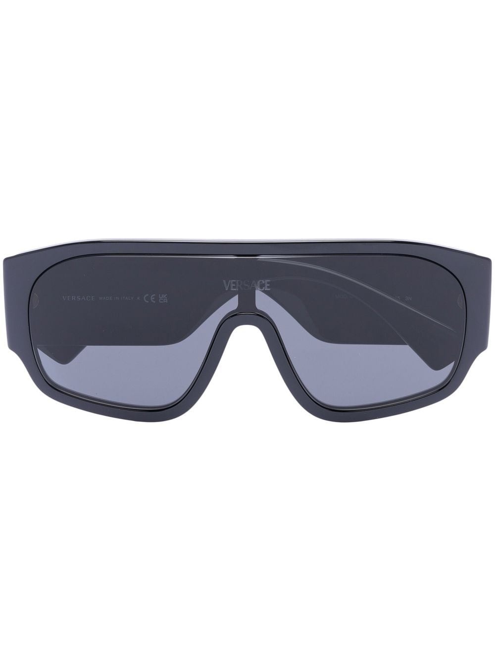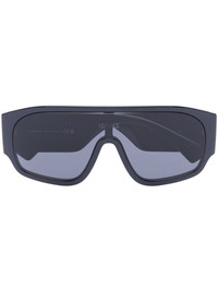 90s Logo-Injected Mask sunglasses black acetate blue tinted lenses gold-tone logo plaque curved tips UV protection These glasses come with a protective case. Made in Italy Composition Acetate 100%, Acrylic 100% SIZE & FIT Measurement Arm Length 5.7 in(14.5 cm) Bridge Width 0.43 in(1.1 cm) Lens Diameter 2.28 in(5.8 cm) Total Width 5.9 in(15 cm)