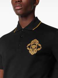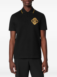 Architectural Baroque-embroidered polo shirt Highlights - Black - Yellow contrast detailing - Front button placket - Embroidered emblem - Short sleeves - Ribbed collar Imported Composition Cotton 100%, Polyester 50%, Metallized Polyester 20%, Nylon 17%, Paper Yarn 13%