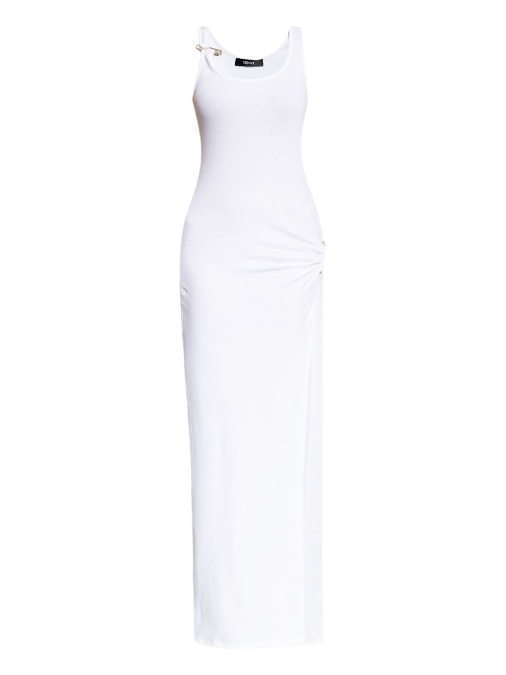 asymmetrical ruched maxi dress Highlights - White - Side slit - Shoulder detailing - Scoop neckline - Gathered accent Made in Italy Composition Cotton 95%, Elastane 5% Washing instructions Read Manufacturer Guidelines