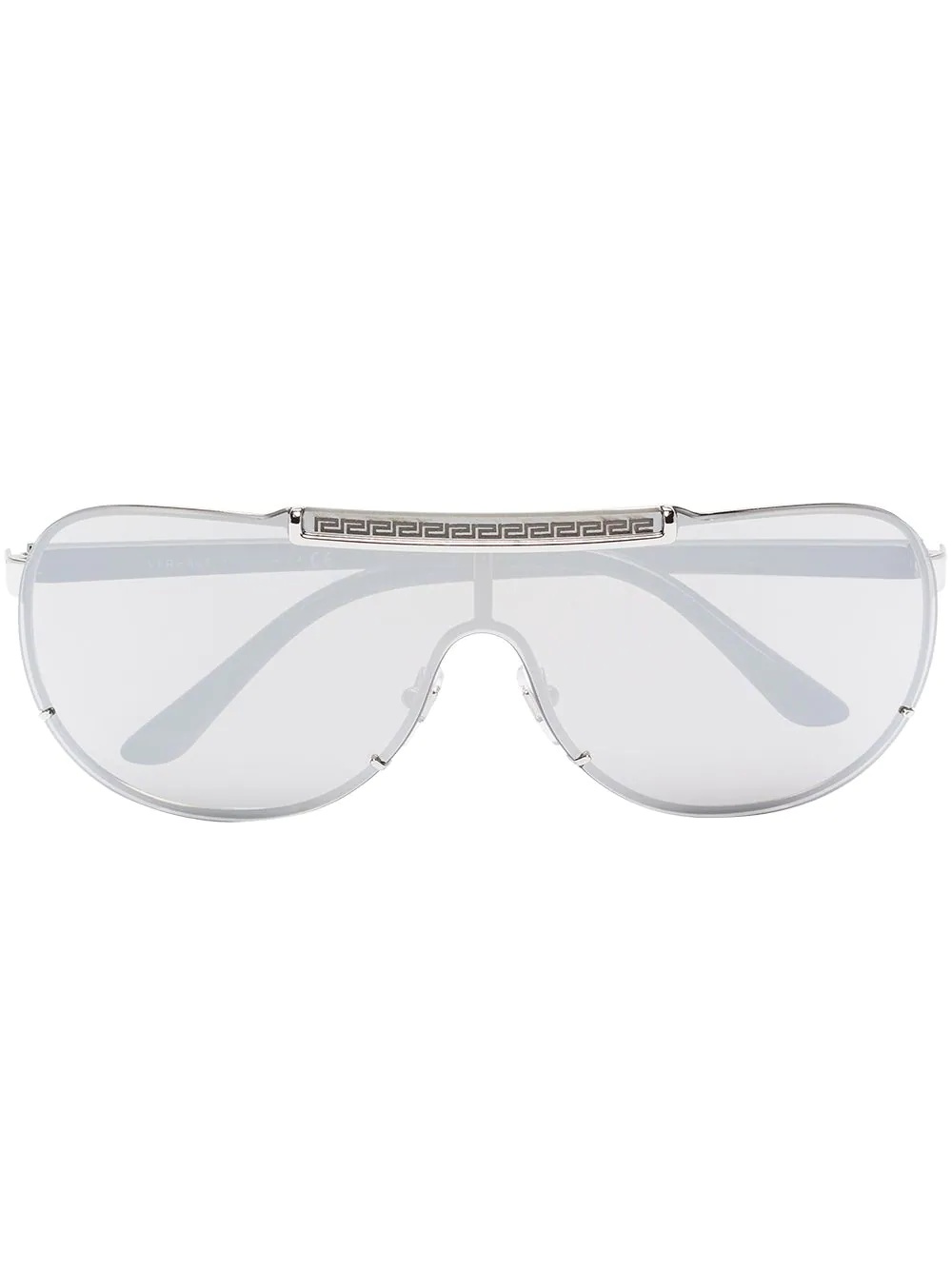 pilot-frame sunglasses Versace Eyewear's sunglasses offer a futuristic take on classic aviator styles. This silver iteration is topped with the brand's signature Greca detailing at the brow bar. Made in Italy Composition Metal 100% SIZE & FIT Model measurements Height 6 ft 4 in(1.92 m) Bust/Chest 36.61 in(93 cm) Hips 35.43 in(90 cm) Waist 32.28 in(82 cm) Measurement Arm Length 5.31 in(13.5 cm) Bridge Width 0.78 in(2 cm) Lens Diameter 2.75 in(7 cm)