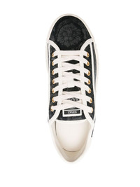 Barocco Greca sneakers Sitting atop a Greca-embossed vulcanized rubber sole, Versace’s jacquard sneakers speak to the brand’s penchant for mythological-inspired motifs. A Medusa patch adorns the tongue whilst an embossed gold-tone logo decorates the heel counter. Highlights - Black/off-white - Canvas/leather - Floral patterned jacquard - Logo patch at the tongue - Contrasting branded heel counter - Signature embossed greca outsole detailing - Contrasting leather trim - Branded leather insole - Front lace-up fastening - Round toe - Rubber sole - This piece comes complete with a protective dust bag. - This piece comes with a certificate of authenticity. Made in Italy Composition Outer: Fabric 100% Lining: Calf Leather 100% Sole: Rubber 100% SIZE & FIT Measurement HEEL 1.18 in(3 cm) Sole height 0.98 in(2.5 cm)