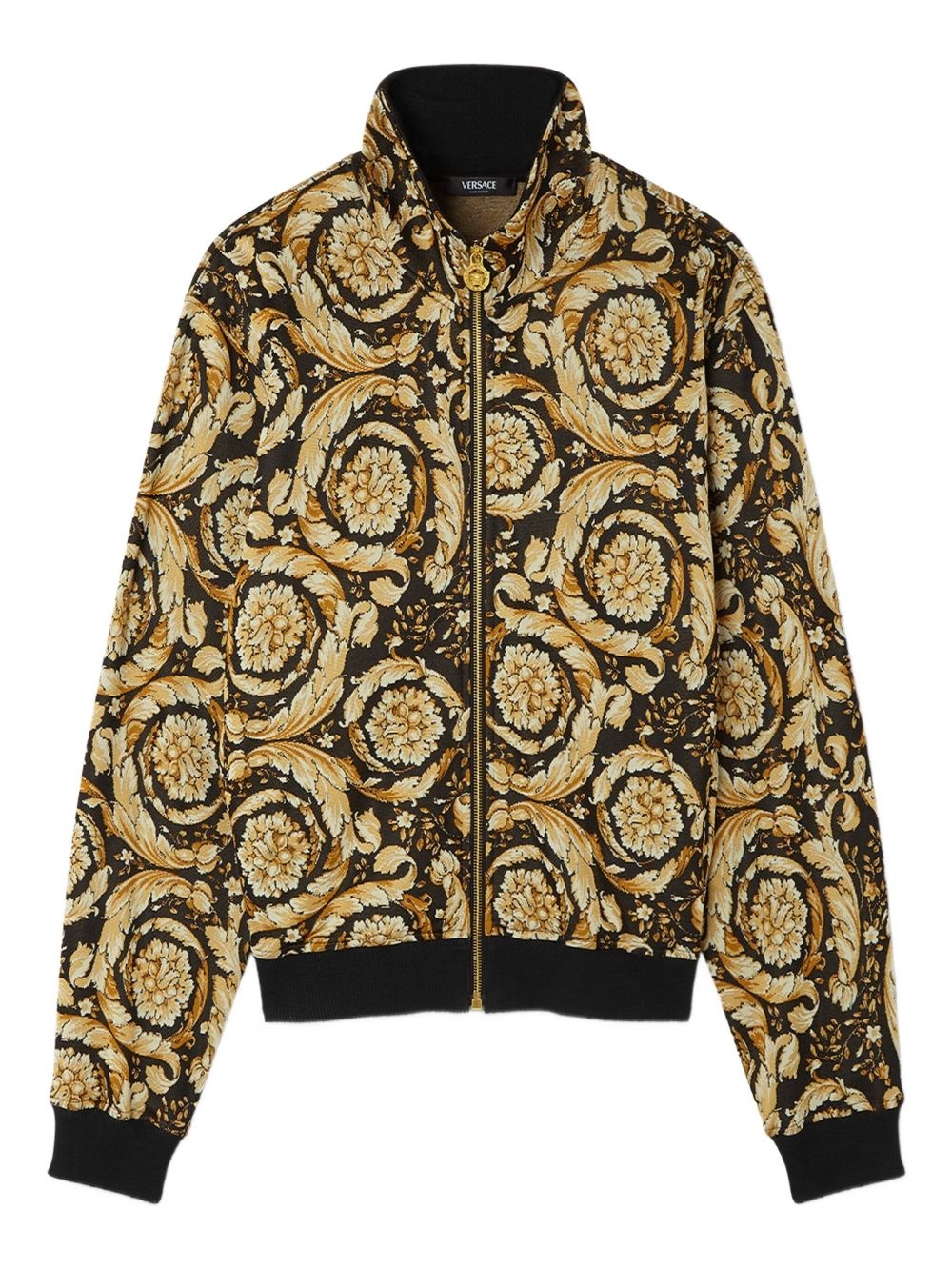 Barocco jacquard sweatshirt Highlights - Black - Front zip fastening - Two side slit pockets - Signature barocco print - Medusa head motif - Funnel neck - Ribbed cuffs and hem Made in Italy Composition Lining: Cotton 100% Outer: Viscose 66%, Nylon 32%, Elastane 2% Washing instructions Read Manufacturer Guidelines