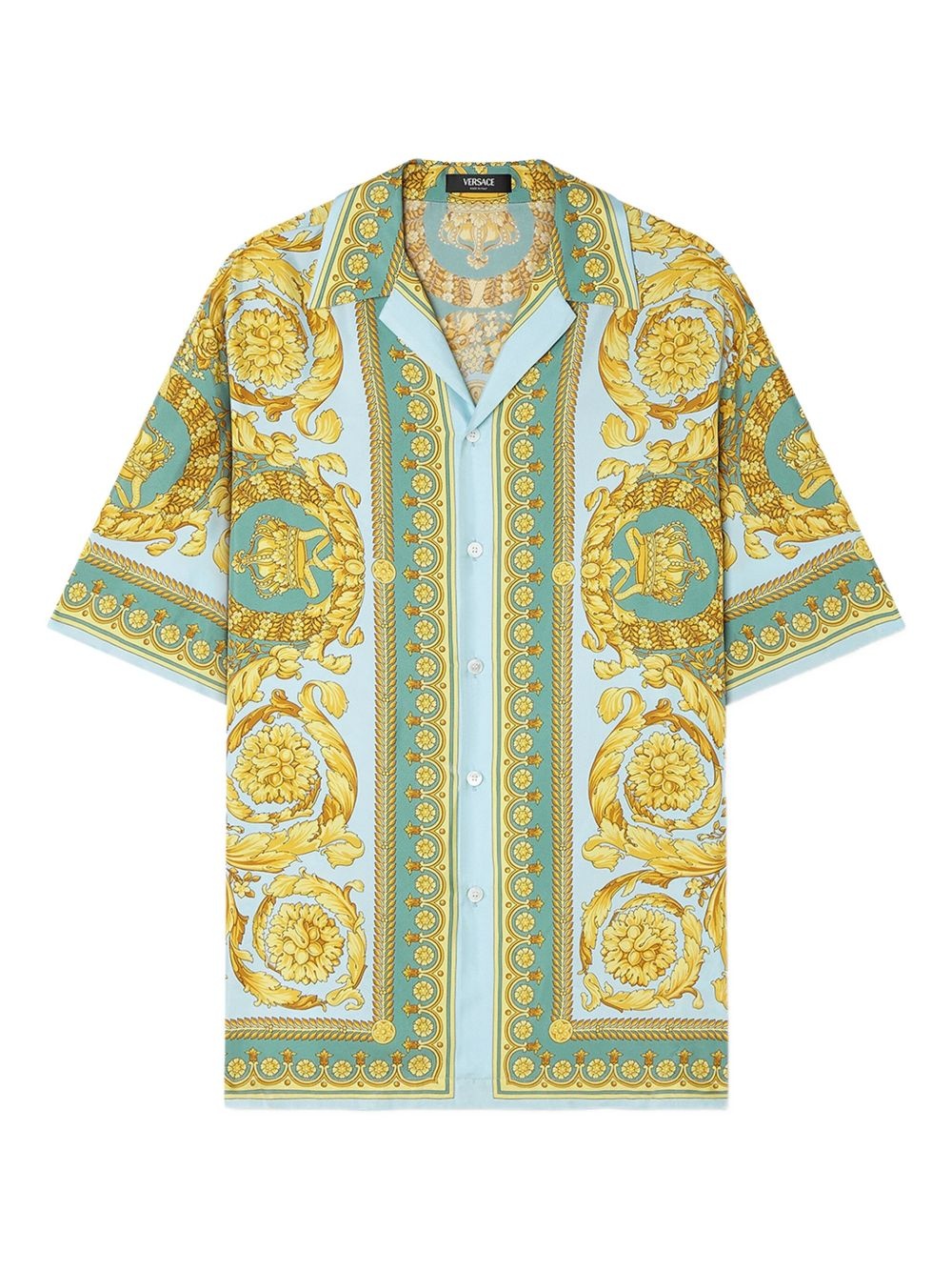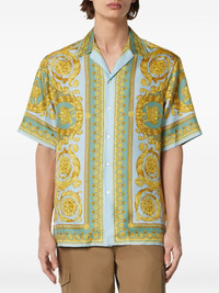 Barocco-print short-sleeve shirt Highlights - Light green - Barocco-inspired pattern - Button closure - Notched collar - Relaxed fit sleeves Made in Italy Composition Silk 100% SIZE & FIT FittingInformation Designed for a regular fit, allowing for a comfortably loose fit throughout the body Made from a midweight non-stretch fabric Washing instructions Read Manufacturer Guidelines