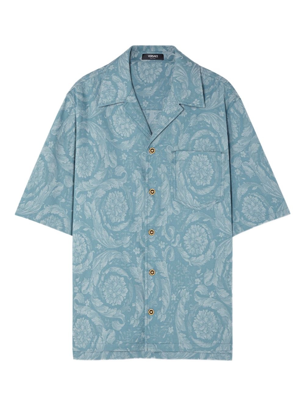 Barocco-print short-sleeve shirt Highlights - Sky blue - Barocco pattern - Button fastening - Notched collar - Chest patch pocket Made in Italy Composition Cotton 100% SIZE & FIT FittingInformation Designed for a regular fit, allowing for a comfortably loose fit throughout the body Made from a midweight non-stretch fabric