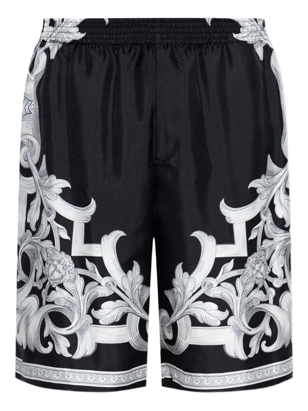 Barocco-print silk shorts Highlights - Black - Silk - Barocco print - Elasticated waistband Made in Italy Composition Outer: Silk 100% Lining: Cupro 100% Washing instructions Read Manufacturer Guidelines