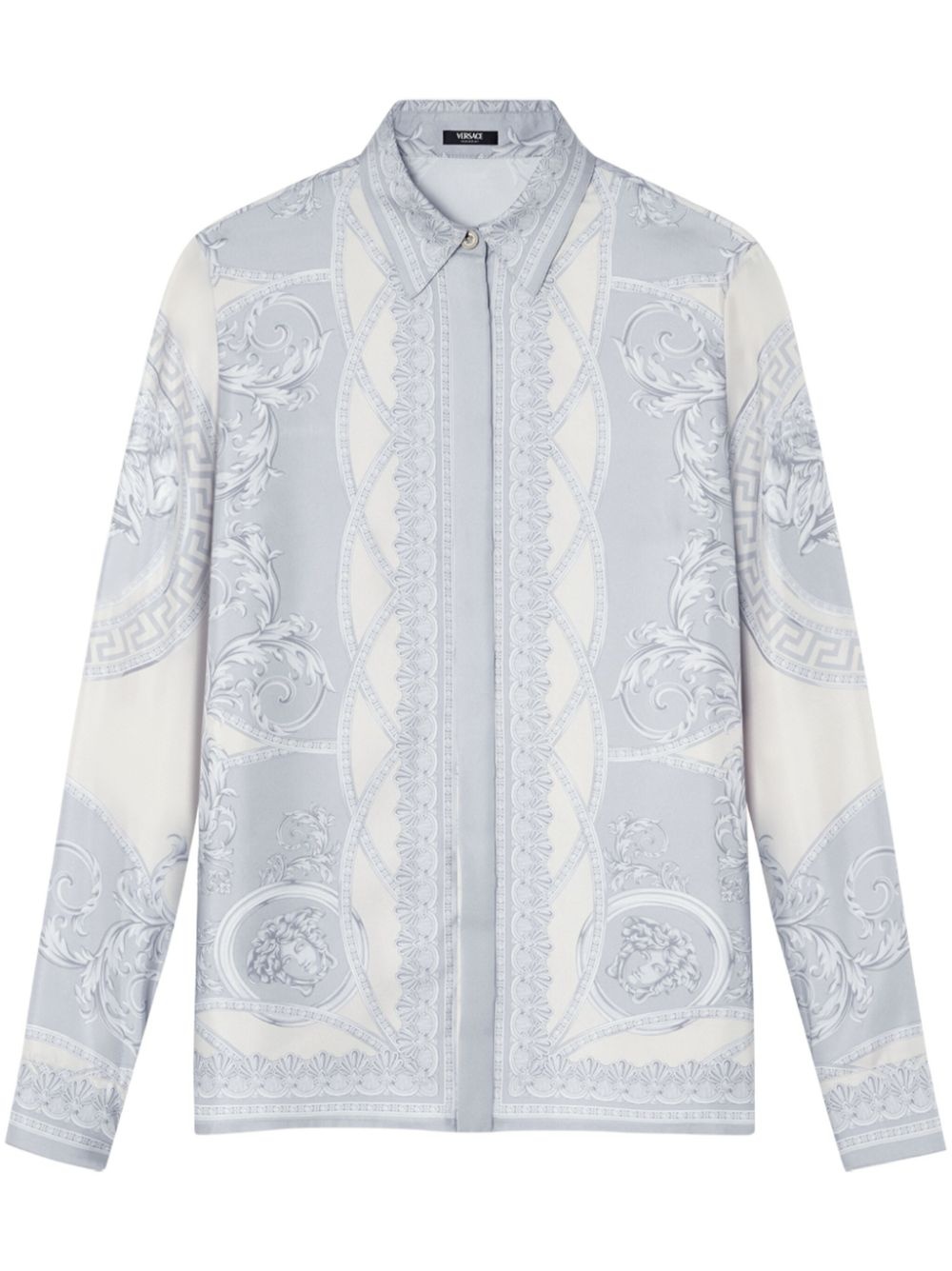 La Coupe des Dieux silk shirt Highlights - Light blue - Silk - Signature barocco print - Concealed front fastening - Classic collar - Long sleeves - Buttoned-cuff sleeves - Straight hem Made in Italy Composition Silk 100%