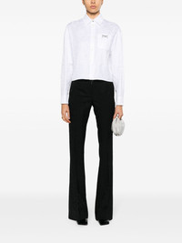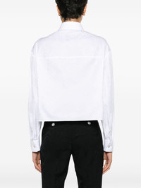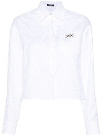 Barocco jacquard cropped shirt Versace founder Gianni was inspired by the floor of ruins in Reggio Calabria, a place the designer frequented as a child, when creating the now iconic Medusa motif. Crafted from classic white cotton, this cropped shirt features the emblem at the chest in a silver-tone plaque detail. Highlights - White - Cotton - Poplin texture - Baroque-pattern jacquard - Medusa plaque detail - Pointed flat collar - Front button fastening - Drop shoulder - Long sleeves - Buttoned cuffs - Chest patch pocket - Straight hem - Unlined Made in Italy Composition Cotton 100% SIZE & FIT Model measurements Height 5 ft 9 in(1.76 m) Bust/Chest 31.88 in(81 cm) Hips 35.43 in(90 cm) Waist 24.8 in(63 cm) Measurement SLEEVE LENGTH 22 in(55.9 cm) LENGTH 20 in(50.8 cm) WAIST 42.99 in(109.2 cm) BUST 44.01 in(111.8 cm) FittingInformation Designed for a relaxed fit, this piece allows for comfort and movement when worn Made from a midweight non-stretch fabric This piece fits true to size – take your usual size Washing instructions Machine Wash