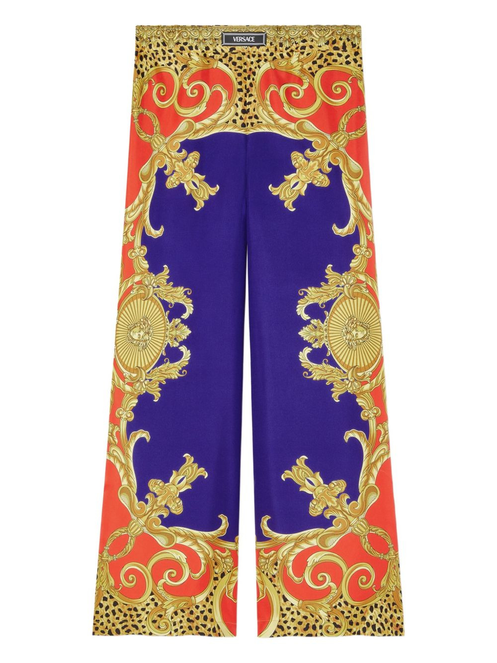 baroque-print elastic-waist trousers purple baroque print elasticated waistband leopard print gold-tone detailing silk material Made in Italy Composition Outer: Silk 100% Lining: Silk 100% Washing instructions Read Manufacturer Guidelines