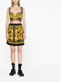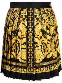 Barocco-print pleated skirt Versace’s Ancient Greek inspirations are seamlessly captured by the label’s iconic motifs. Accented with the brand’s signature Baroque print, this skirt ties in with the label’s aesthetic. Highlights - Black/gold-tone - Silk - Baroque-pattern print - Pleat detailing - High waist Made in Italy Composition Silk 100% SIZE & FIT Model measurements Height 5 ft 9 in(1.75 m) Bust/Chest 31.49 in(80 cm) Hips 34.05 in(86.5 cm) Waist 24.21 in(61.5 cm) Measurement HIPS 37 in(94 cm) LENGTH 18.11 in(46 cm) WAIST 25.98 in(66 cm) Washing instructions Dry Clean Only