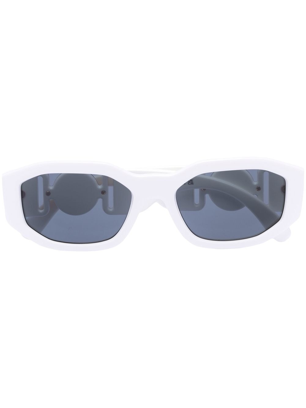 Biggie geometric-frame sunglasses Highlights - White - Acetate - Gold-tone hardware - Medusa plaque detail - Rectangle frame - Grey tinted lenses - Uv-protective lenses - Sculpted arms - Curved tips - These glasses come with a protective case. Made in Italy Composition Acetate 100%, Acrylic 100% SIZE & FIT Measurement Arm Length 5.51 in(14 cm) Bridge Width 0.7 in(1.8 cm) Lens Diameter 2.08 in(5.3 cm) Total Width 5.51 in(14 cm)