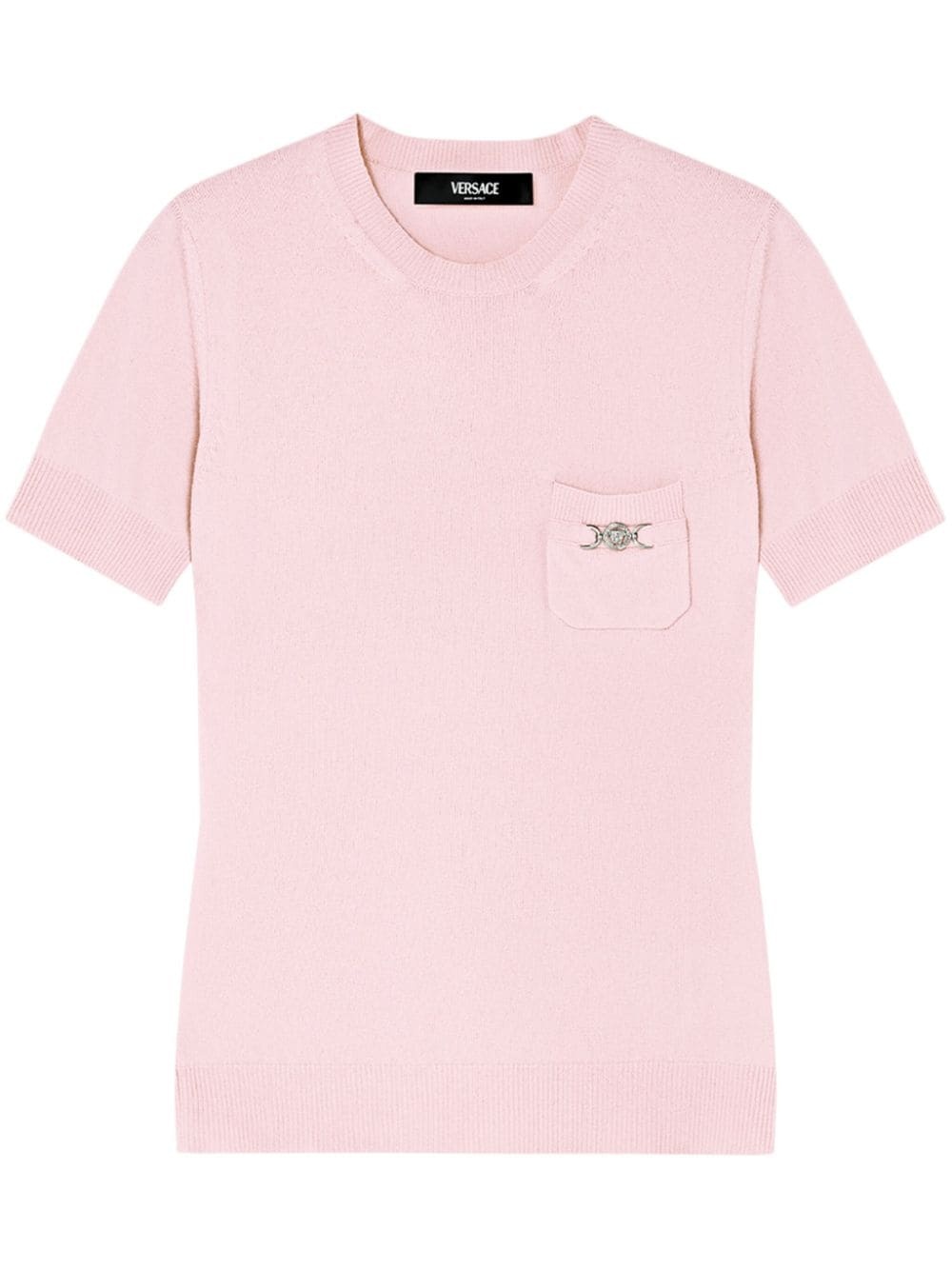 Medusa-plaque knitted top Highlights - Light pink - Wool - Medusa plaque detail - Knitted construction - Crew neck - Short sleeves - Ribbed-knit edge Made in Italy Composition Wool 100% SIZE & FIT Measurement SLEEVE LENGTH 8.66 in(22 cm) LENGTH 23.62 in(60 cm) WAIST 29.92 in(76 cm)
