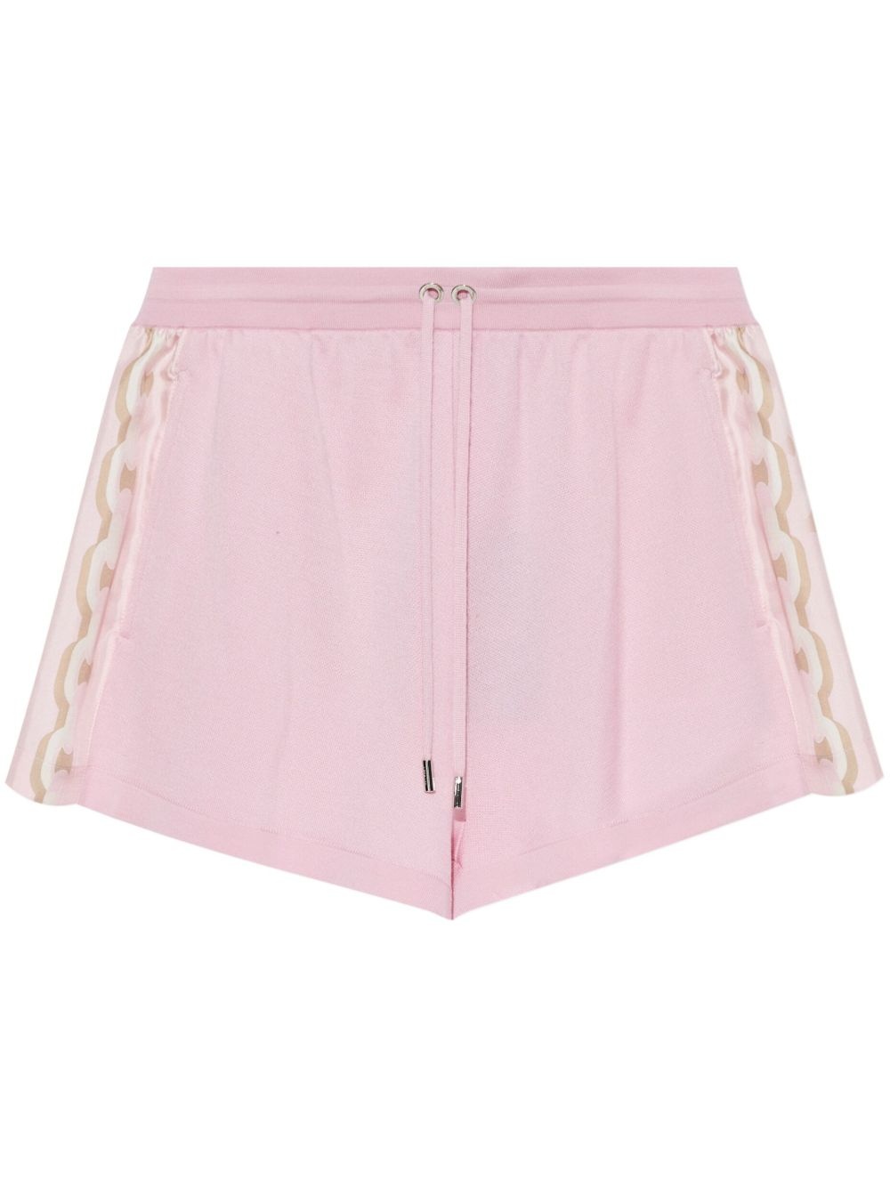 chain-link detail shorts Highlights - Light pink - Elasticated drawstring waistband - Two side inset pockets - Wide leg Made in Italy Composition Wool 70%, Silk 30%