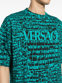 Coccodrillo-print cotton T-shirt Versace showcases its bold aesthetic with this T-shirt. It’s cut from cotton to a classic crew-neck silhouette and adorned with a seasonal Coccodrillo print that evokes an animalier look. Highlights - Green - Cotton - All-over graphic print - Logo print to the front - Crew neck - Short sleeves - Straight hem Imported Composition Cotton 100% SIZE & FIT Model measurements Height 6 ft 2 in(1.87 m) Bust/Chest 34.25 in(87 cm) Hips 36.22 in(92 cm) Waist 29.52 in(75 cm) Washing instructions Machine Wash