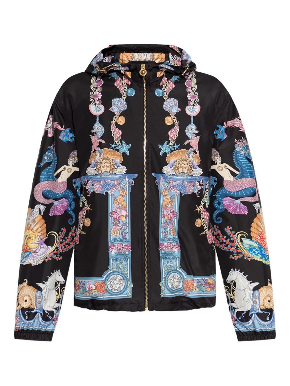 Coral Theatre hooded jacket Highlights - Black - Seashell print - Mermaid print - Seahorse print - Central zip fastening - Gold-tone zip pull Made in Italy Composition Polyester 100% Washing instructions Read Manufacturer Guidelines
