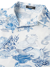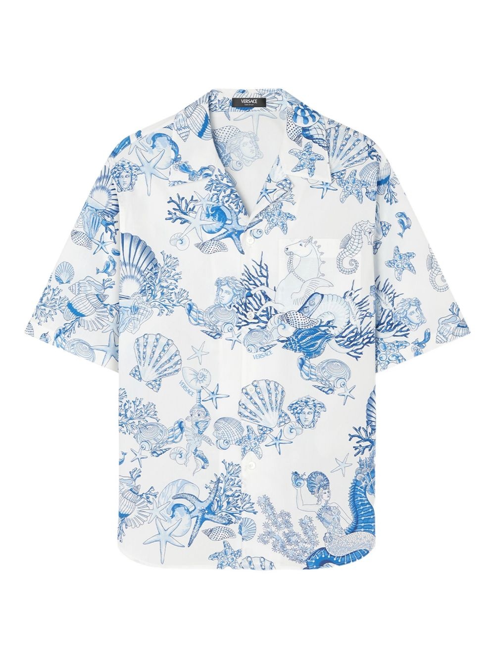Coral Theatre cotton shirt Highlights - Blue - Front button fastening - Chest patch pocket - Coral theatre all-over print - Short sleeves - Straight hem Made in Italy Composition Outer: Cotton 100%