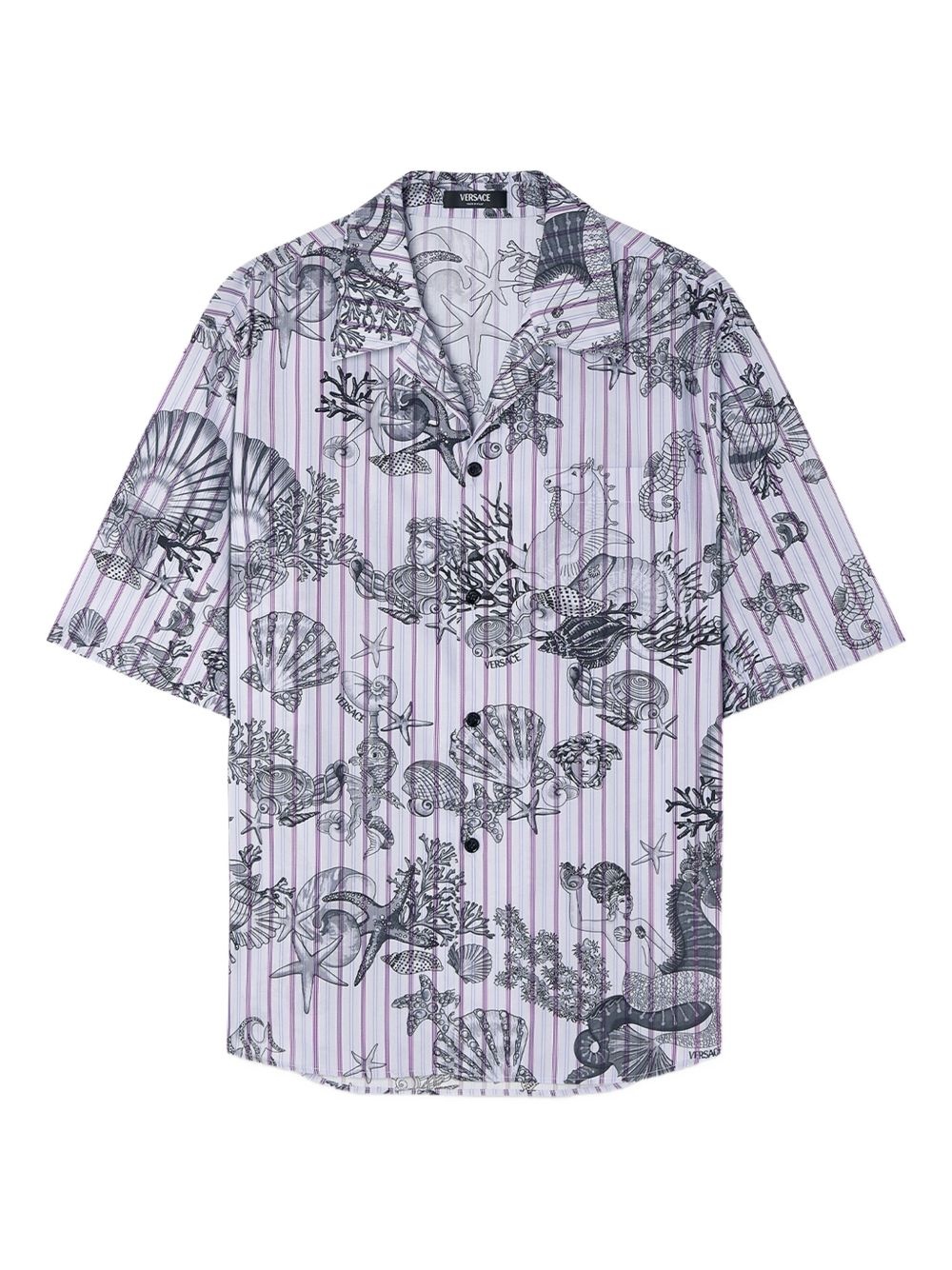 Coral Theatre striped shirt Highlights - Purple - Front button fastening - Vertical stripe pattern - Coral theatre allover print - Classic collar - Short sleeves Imported Composition Outer: Cotton 100%