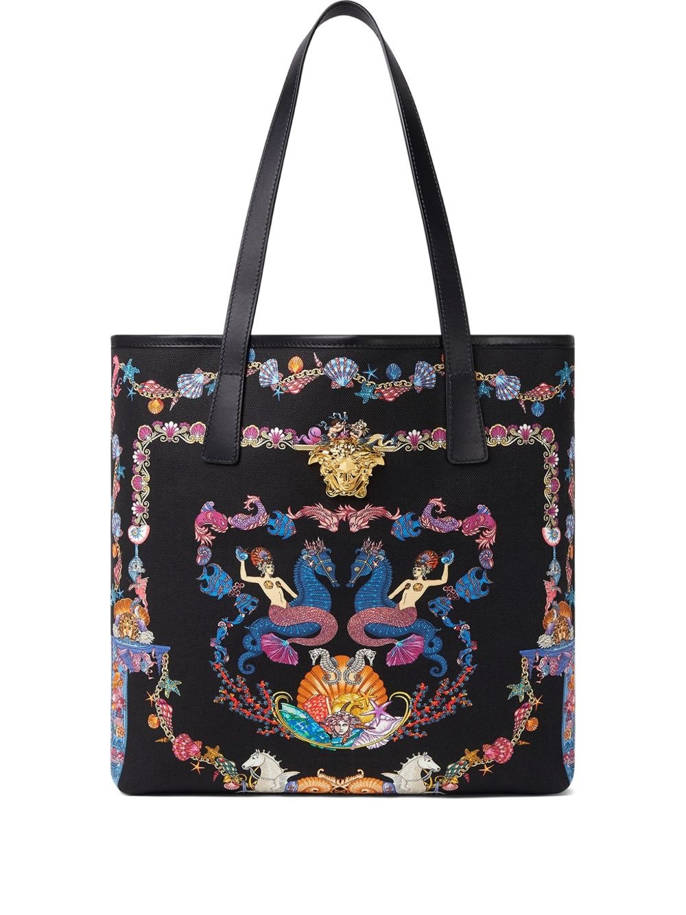 Coral Theatre La Medusa canvas tote bag Highlights - Black - Coral theatre print - Dual shoulder straps - Embellished details - Open top - Spacious interior Made in Italy Composition Outer: Cotton 100% Lining: Cotton 100% SIZE & FIT Measurement DEPTH 2.36 in(6 cm) HEIGHT 13.38 in(34 cm) WIDTH 13.38 in(34 cm)