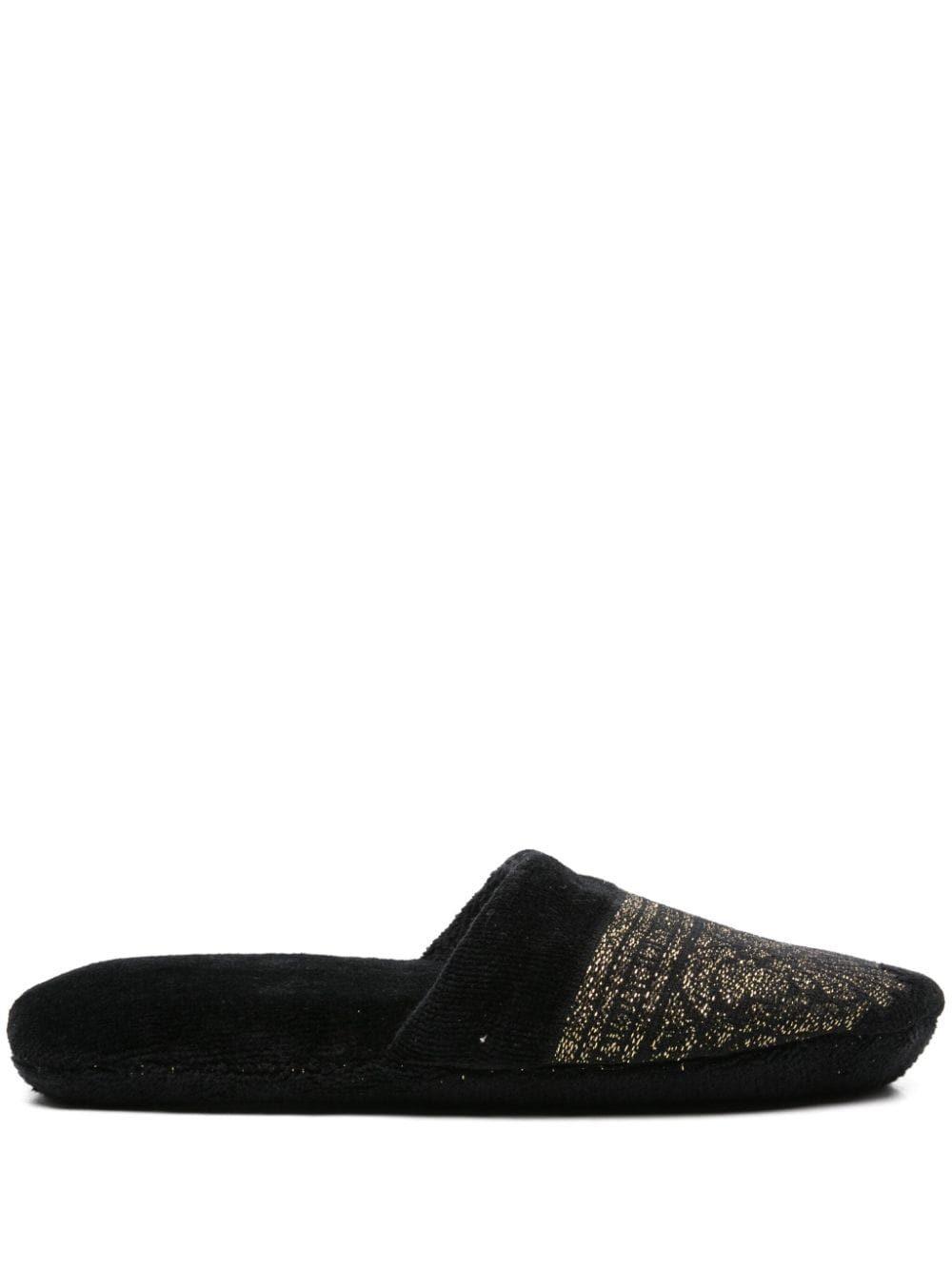 Couple des Dieux bath slippers Highlights - Black - Towelling finish - Metallic threading - Slip-on style - Round toe - French terry lining - French terry sole Made in Italy Composition Lining: Cotton 100%, Polyurethane 100% Outer: Viscose 54%, Metallic Fibre 46% Sole: Cotton 100%